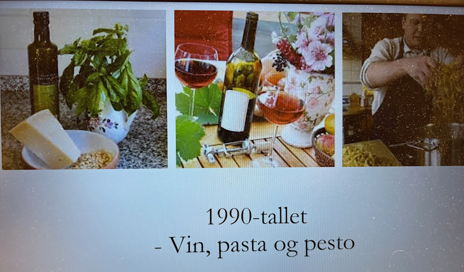 Nå kom den kontinentale maten for fullt, det være seg skinke fra Italia og Spania, pizza, taco, pasta, pesto, olivenolje, mozarella, basilikum, salsa, guacamole og drikke - det vil si vin. Det kom utspill fra KrF som ville forby vin på kartong. Tapas ble også populært. På 1900-tallet spiste nordmenn mer på restaurant og café. Likestillingen førte til at menn ble mer aktive på kjøkkenet – hvis de fikk tillit. Bugge mener at her har en del kvinner fortsatt en vei å gå med.